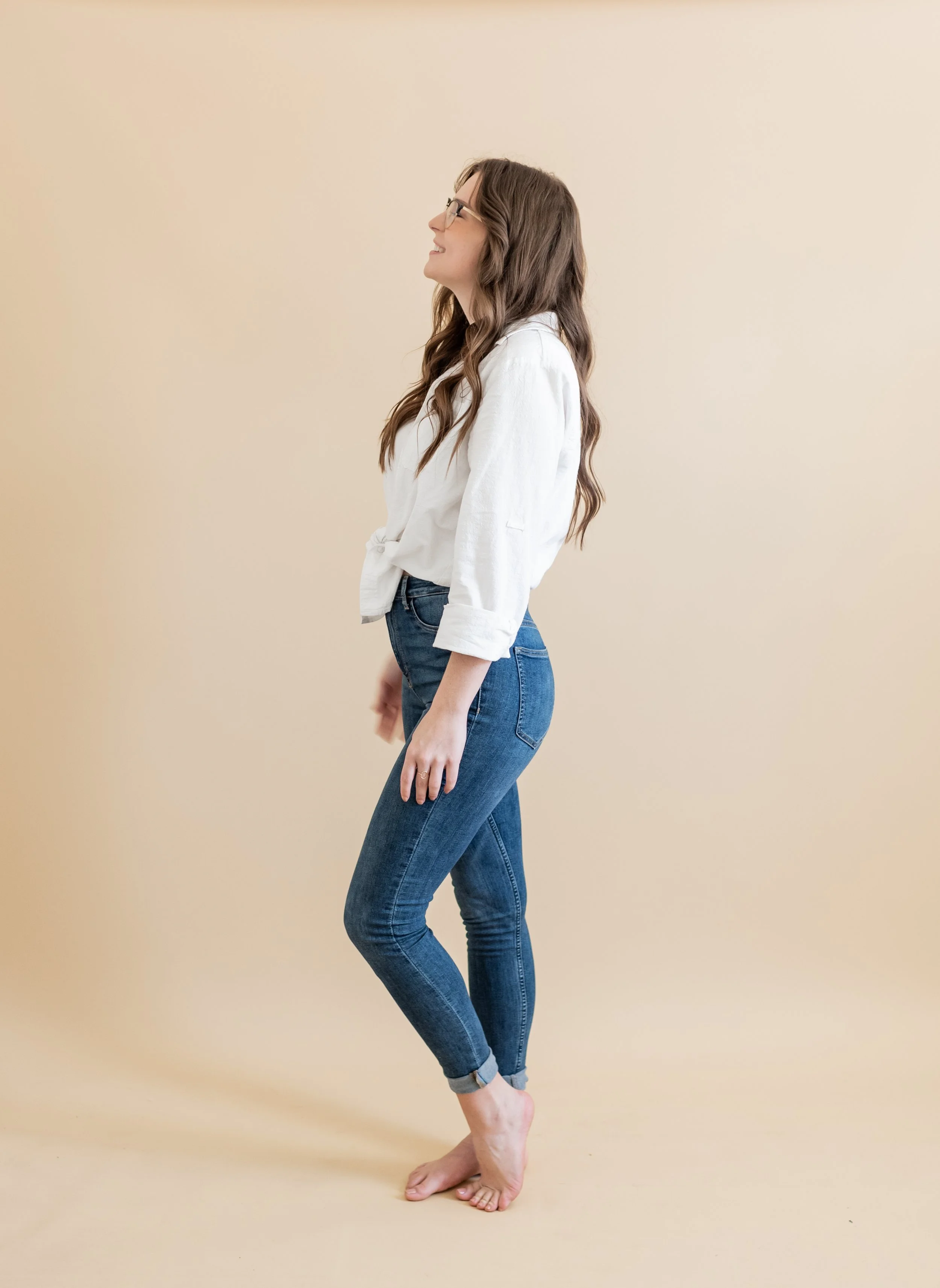 I love studio shoots, because you can create professional imagery for your brand with a minimal aesthetic. The focus is generally on your poses and expressions, but you can also bring in props or create an office environment for those lifestyle working photos.