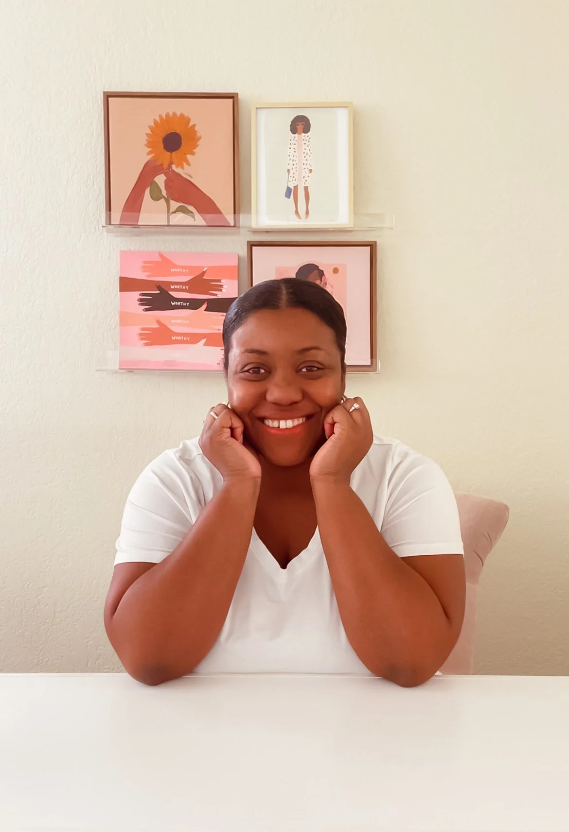 If you don’t know what to do with your hands while you’re posing at a desk, these are a natural way to look more engaged with the camera, and show off your personality. Zaps the awkward vibe immediately ha!