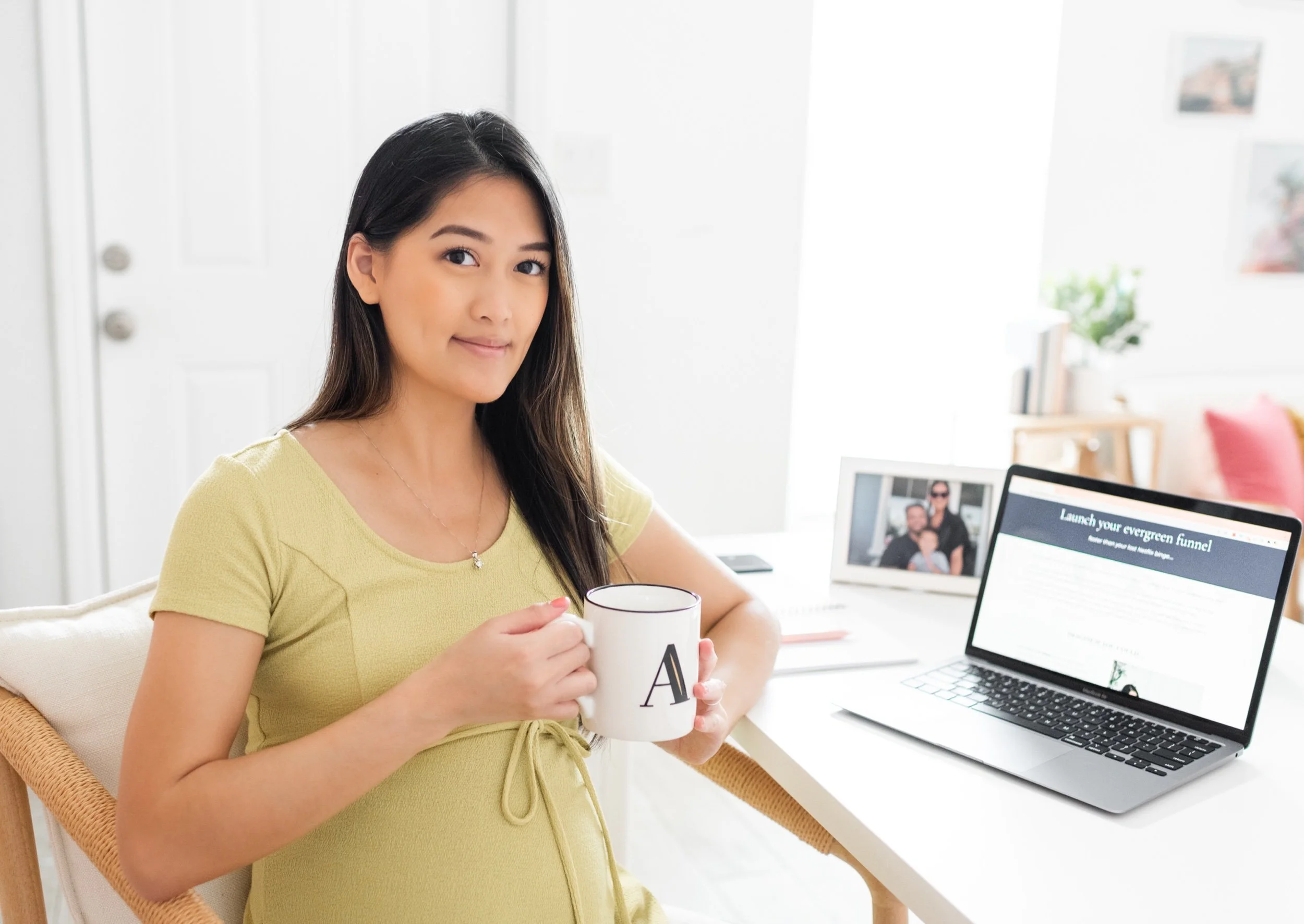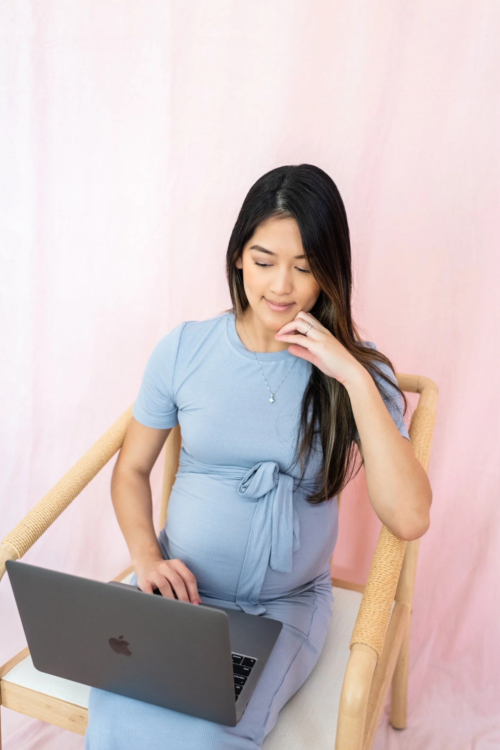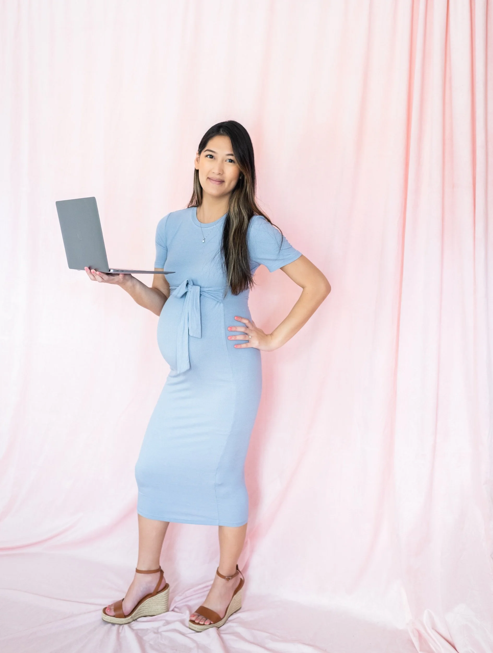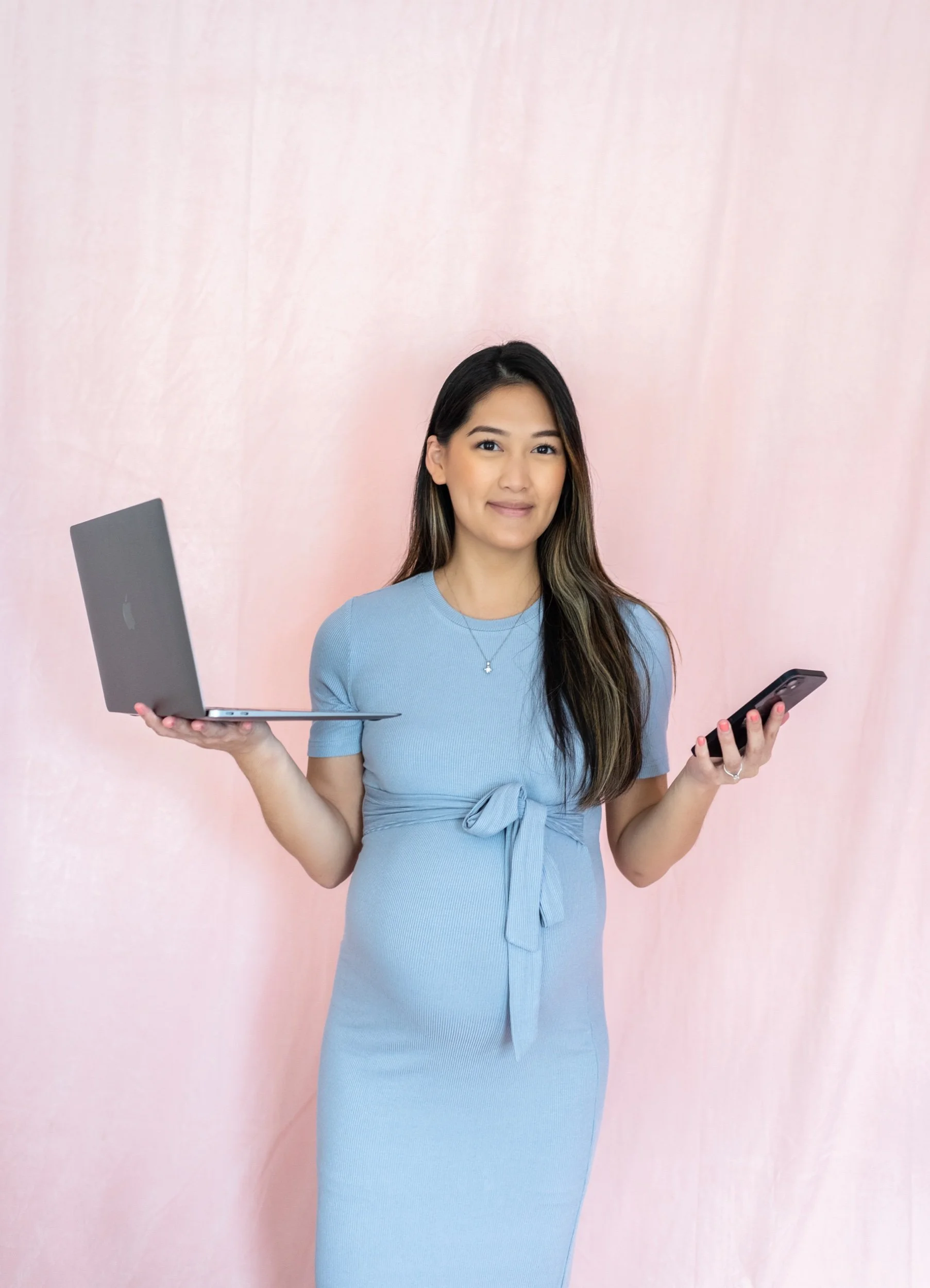 Fast forward to now, she’s expecting her second child, her business has grown and she wanted updated photos for her tech and automations business. So, we shot these beautiful photos of her at my studio to show all of the tools she uses in her business, mom life and how her services allow her clients to have more work life balance.