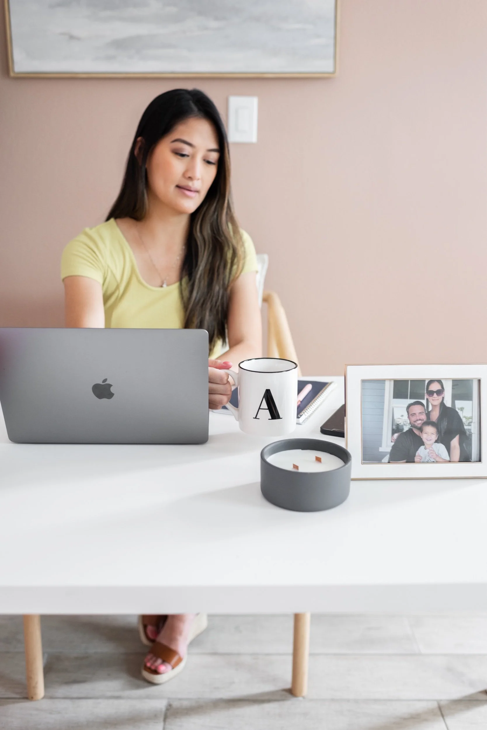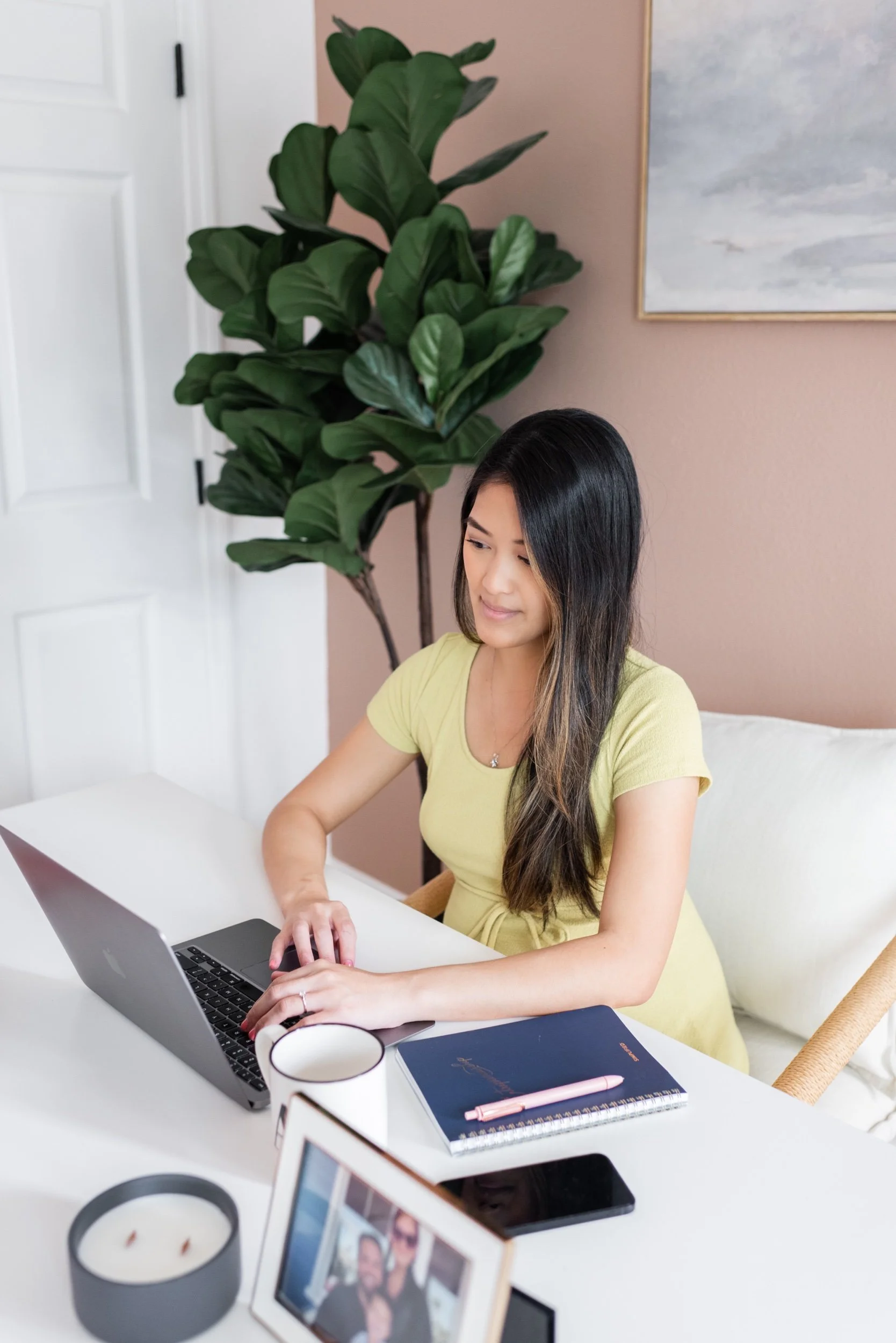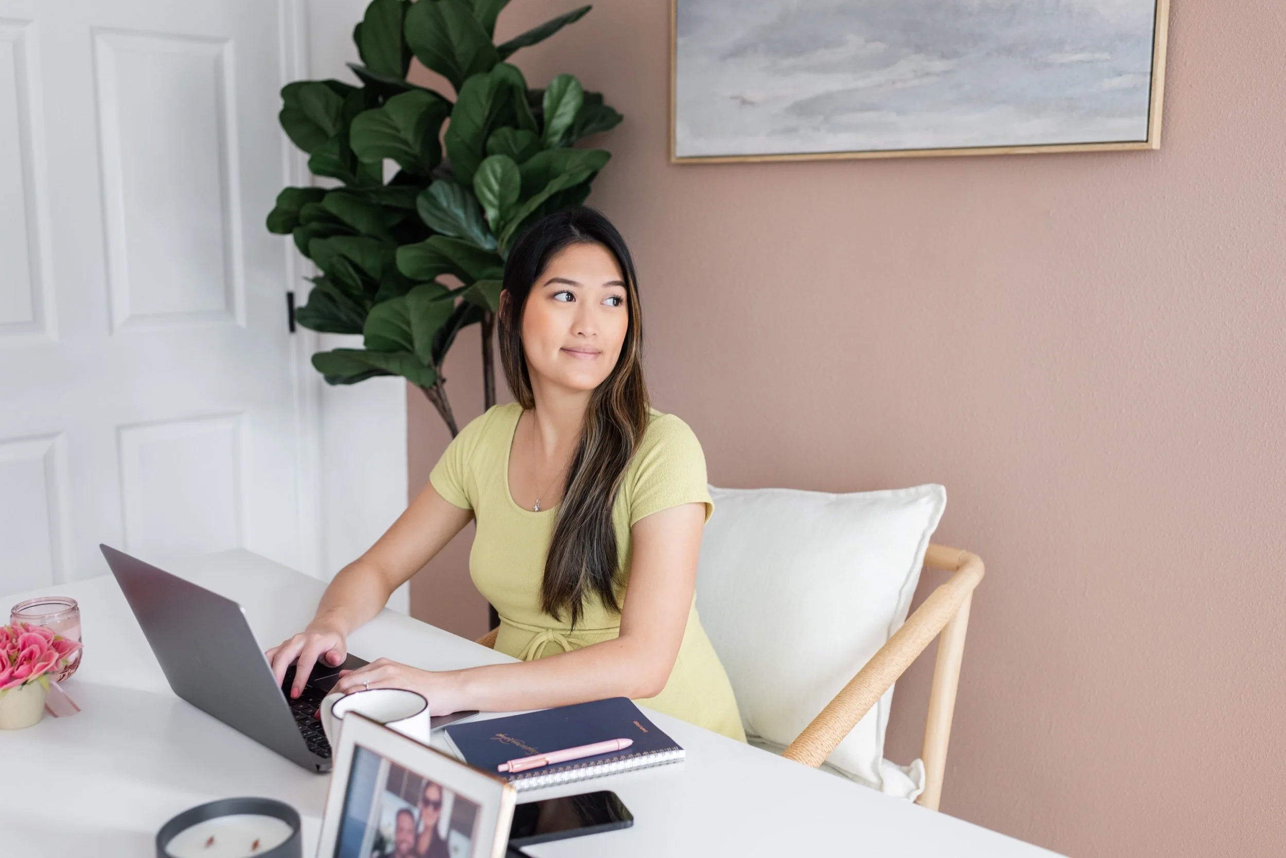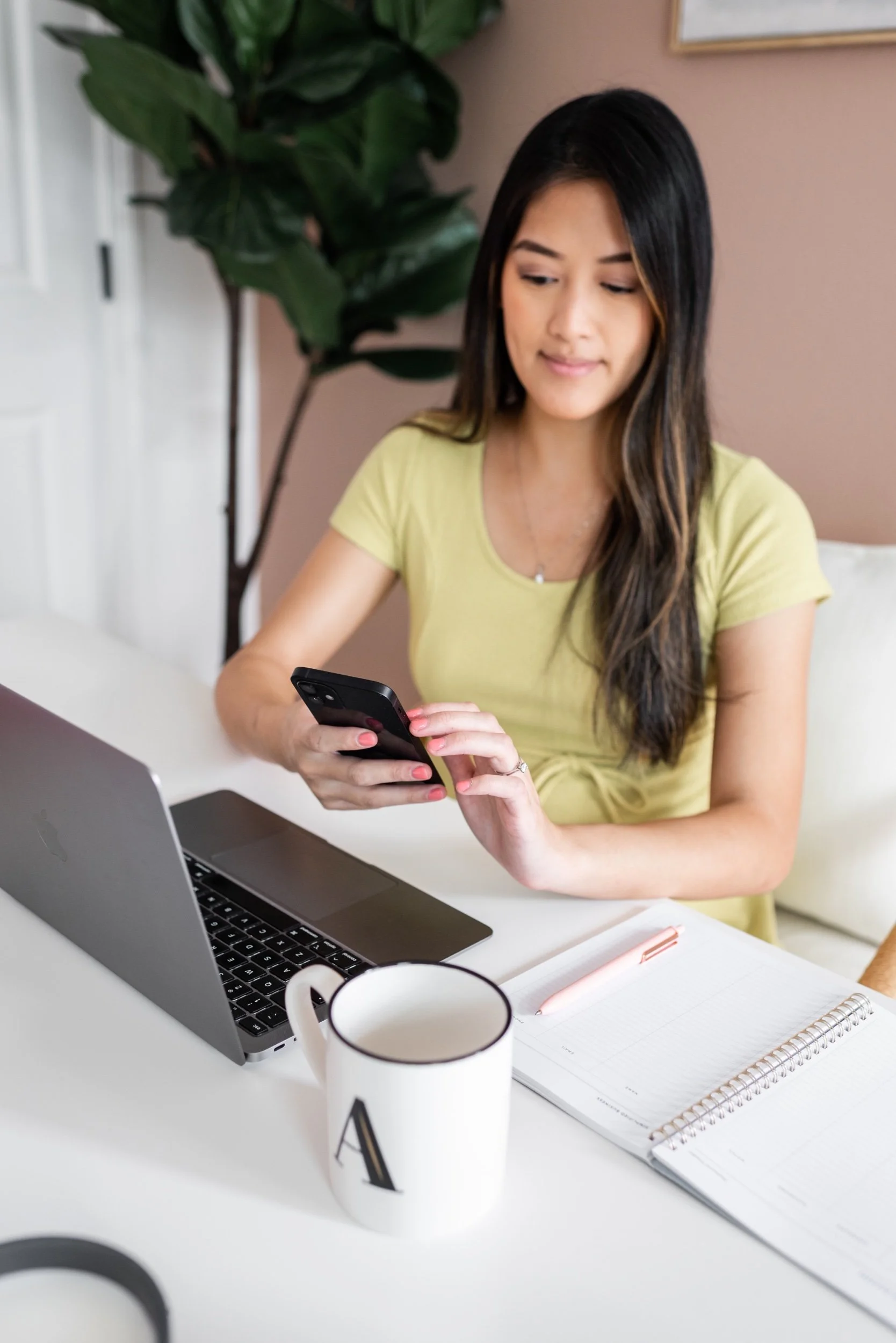 Fast forward to now, she’s expecting her second child, her business has grown and she wanted updated photos for her tech and automations business. So, we shot these beautiful photos of her at my studio to show all of the tools she uses in her business, mom life and how her services allow her clients to have more work life balance.