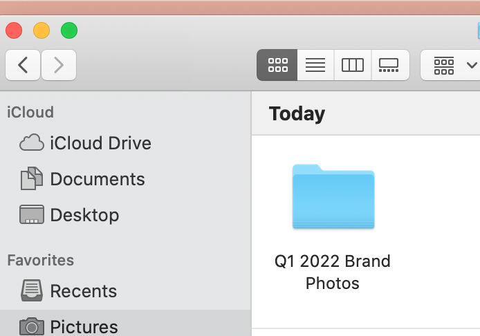 1. Download your new images to a folder on your computer. Name the folder “Q1 Brand Photos” for example, so you can easily find it. Save it to your desktop or Pictures folder. If the photos aren’t already renamed, go ahead and rename them to your name or business name. It’s great for SEO when you upload them to your website or other online sites where the photos may be used. Upload the folder online to Google Drive for example, just in case.