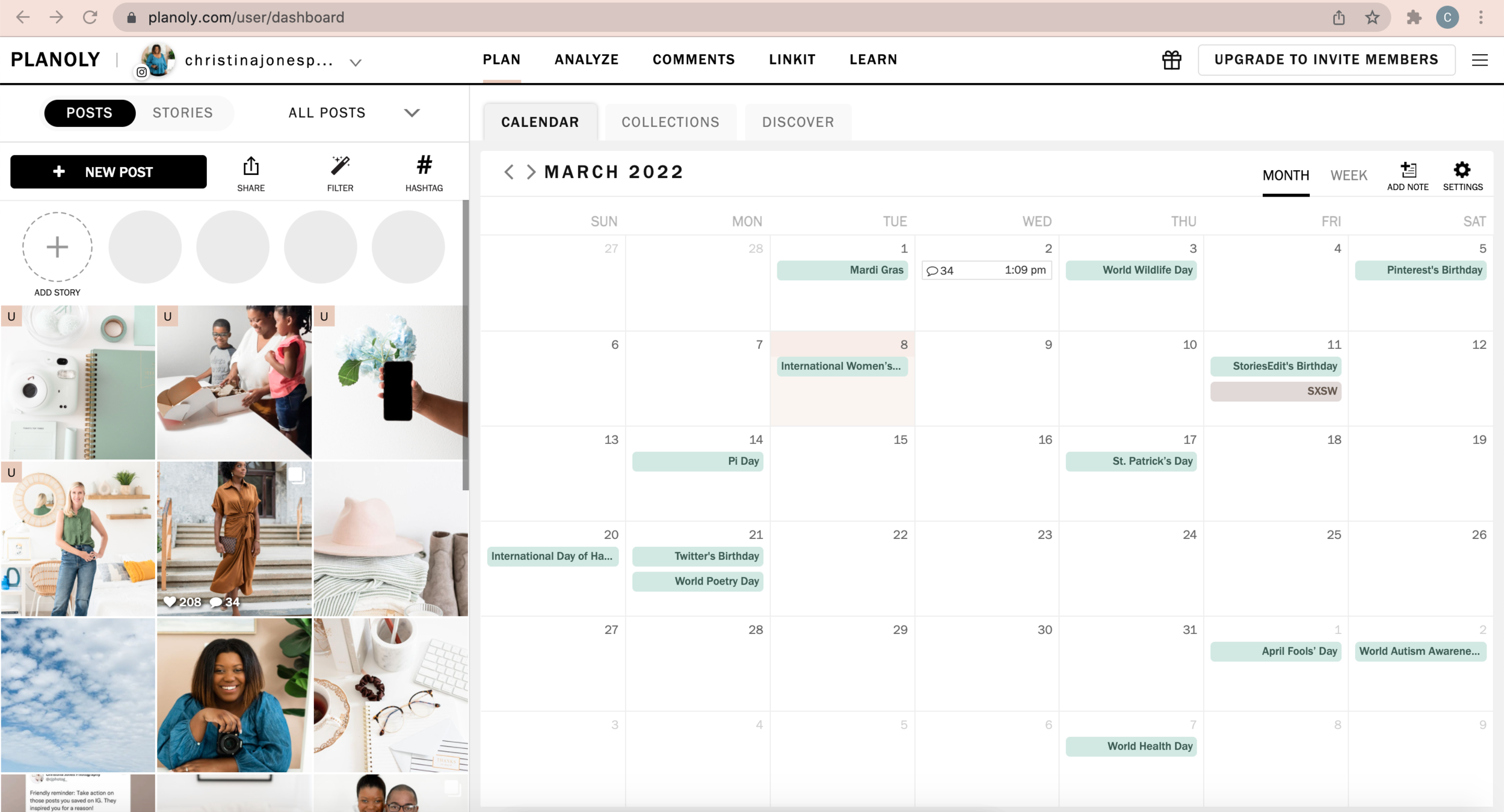 5. Update your content calendar and social scheduler with your new images to start creating on-brand content! My go-to is Planoly. I’ll upload them to the app, and move them around my grid until I feel like they flow. Create variety with your brand photos by using images with different outfits, some close up, some far away, some with no face (just hands or just props for example). Use them as Reels covers, in your Reels, as educational or inspirational carousel posts, and more.