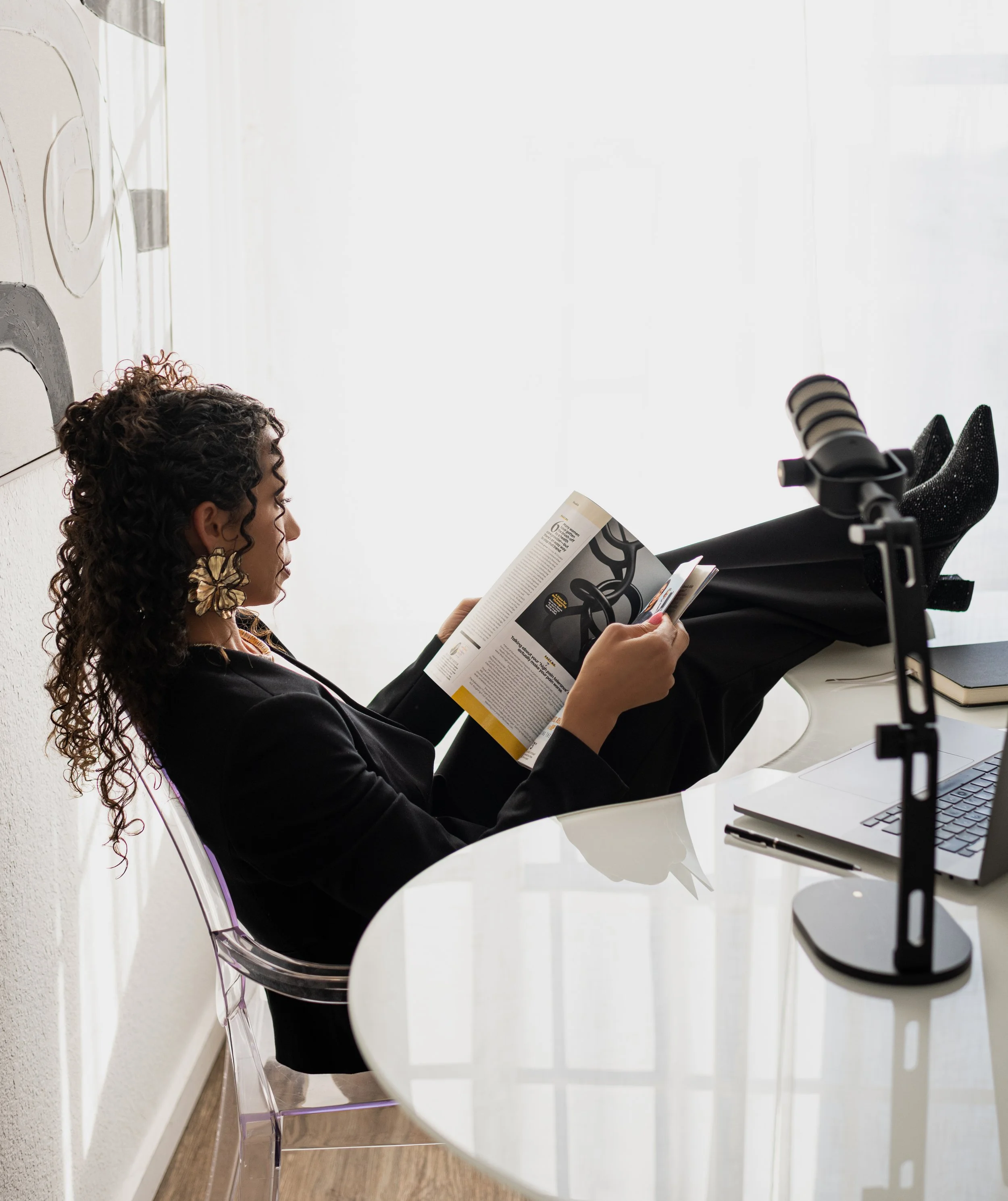 We captured in action b-roll videos of her posing, doing virtual coaching, and recording her podcast