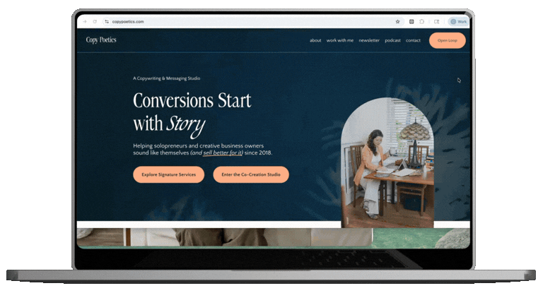 Nicole offers conversion copywriting services to solopreneurs and small teams. Her branding goals were to present a professional and approachable image, and emphasize a friendly, casual, natural tone.
