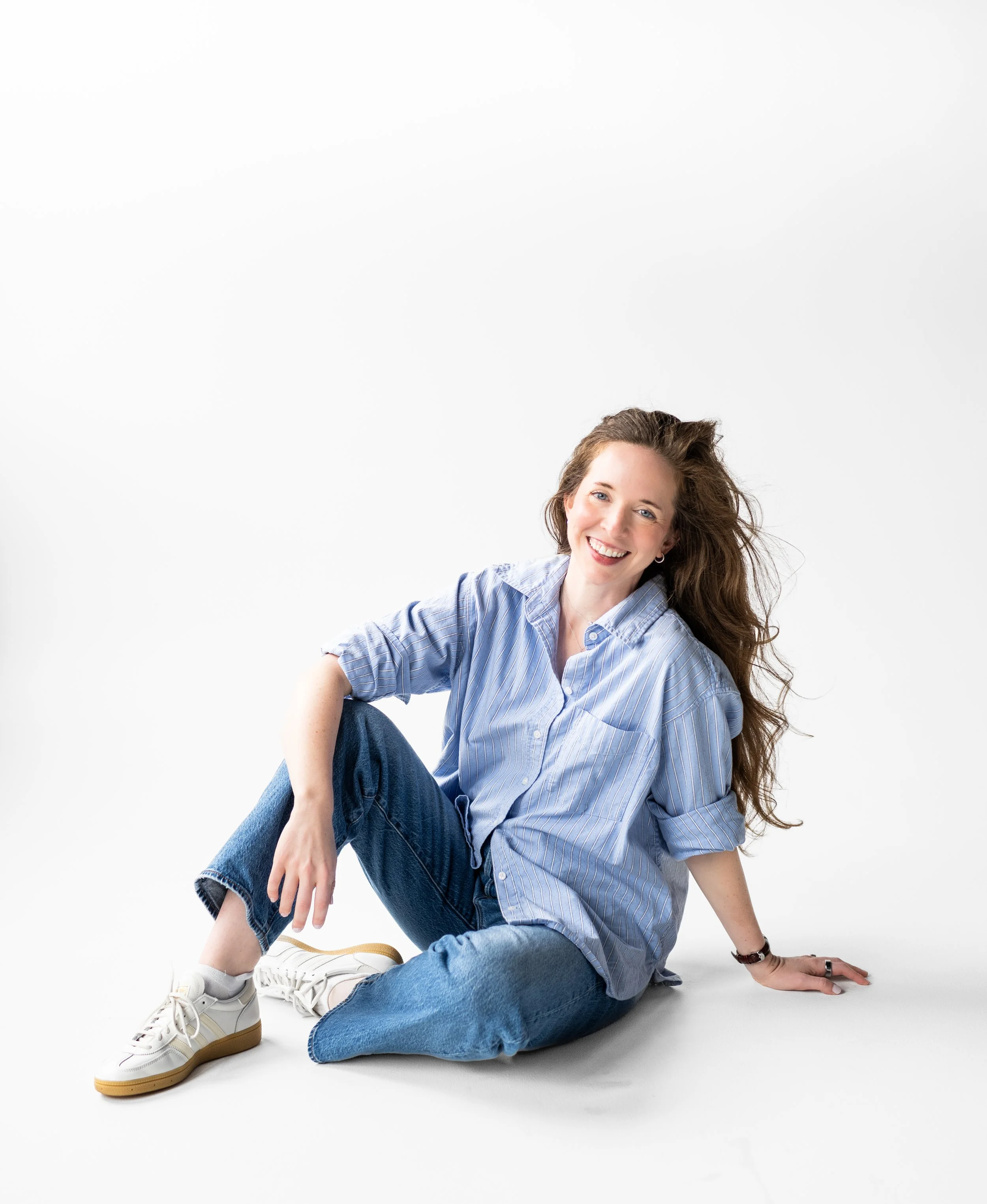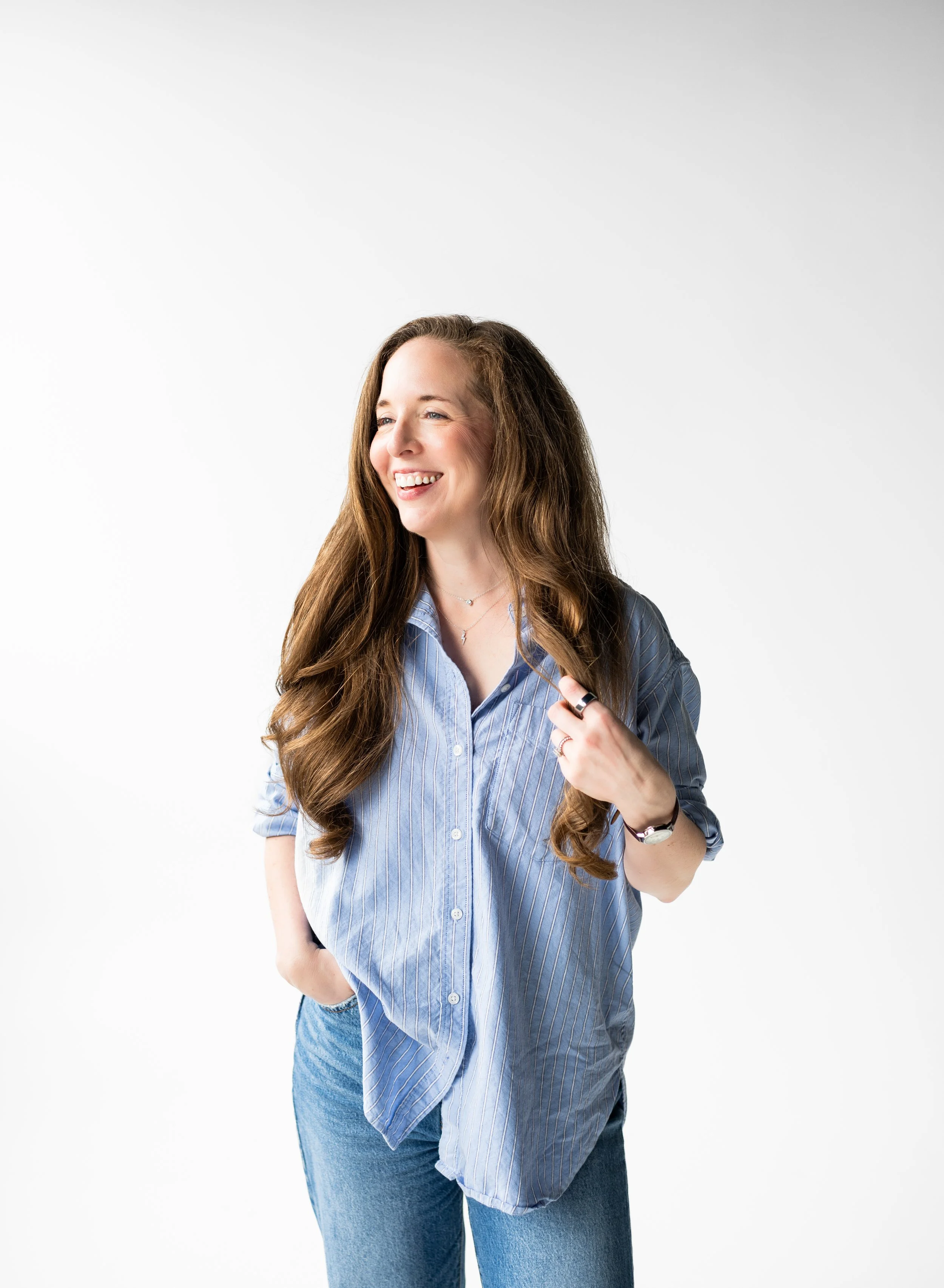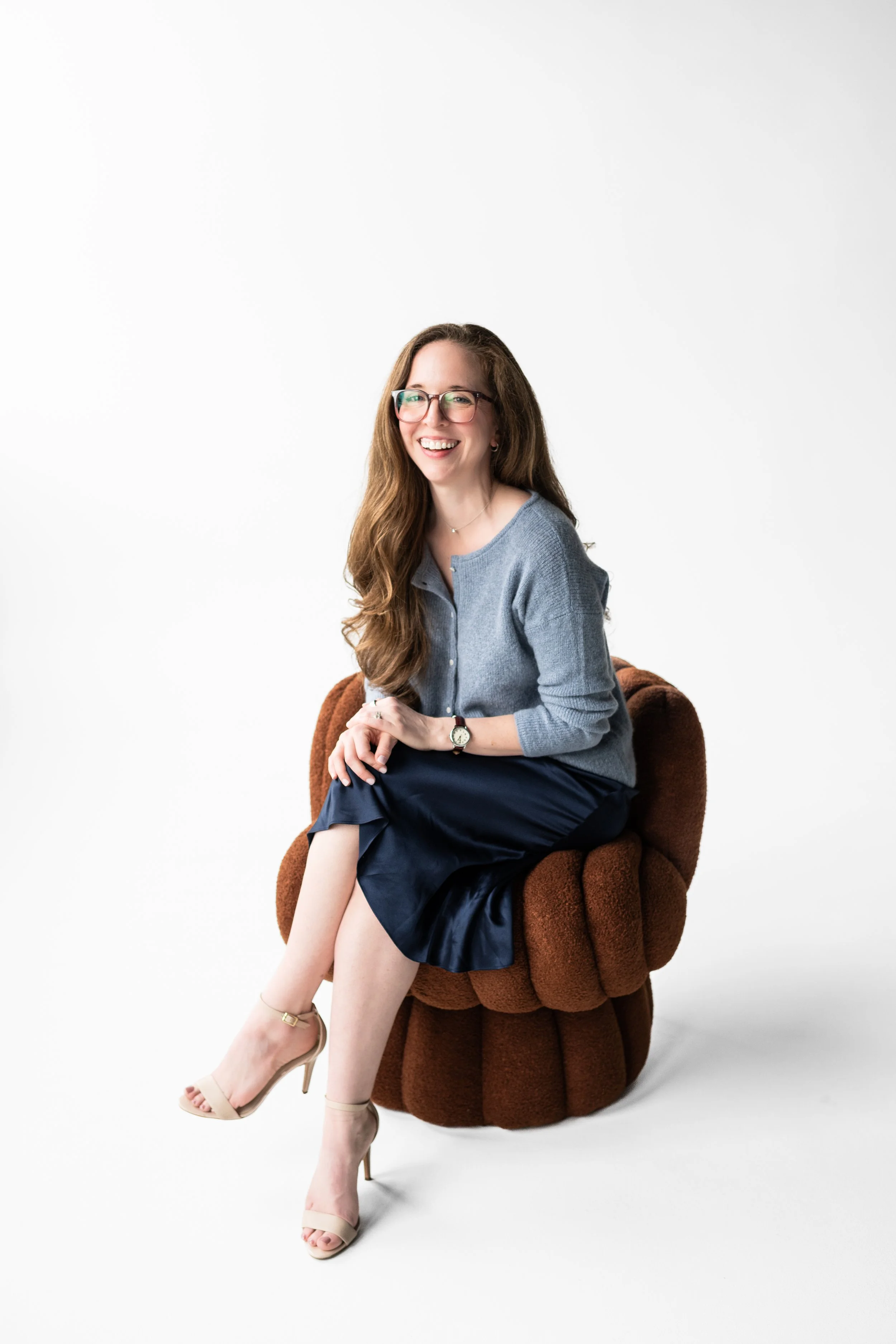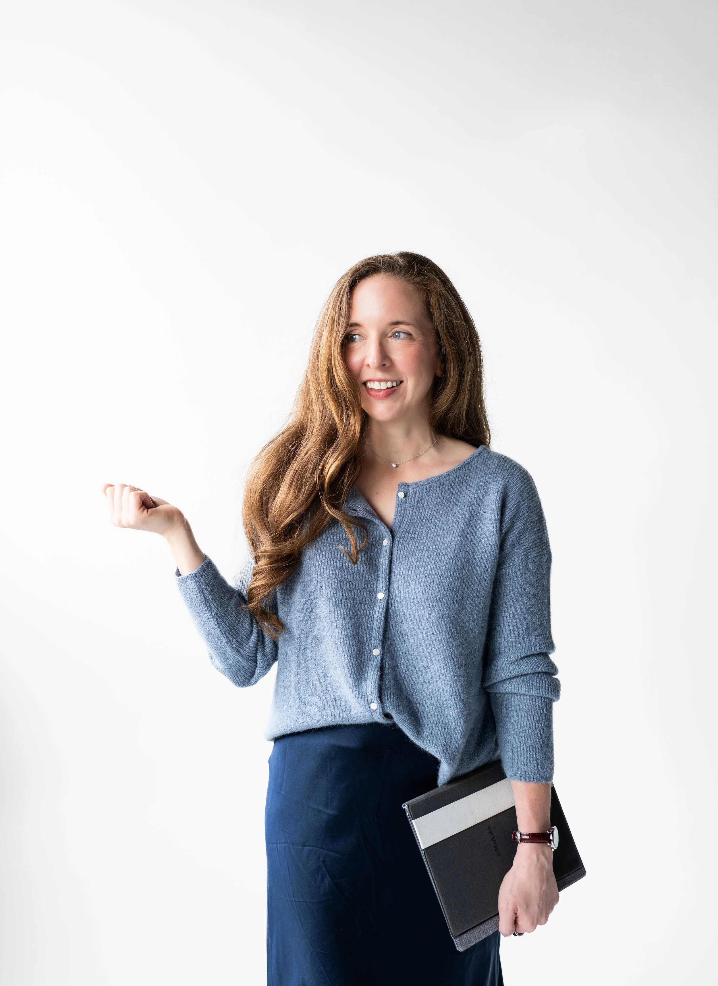 We captured brand photos with 3 outfit changes in a clean, minimal studio with a white background. We incorporated props that tell the story of her brand including laptop, notebook and iPad.