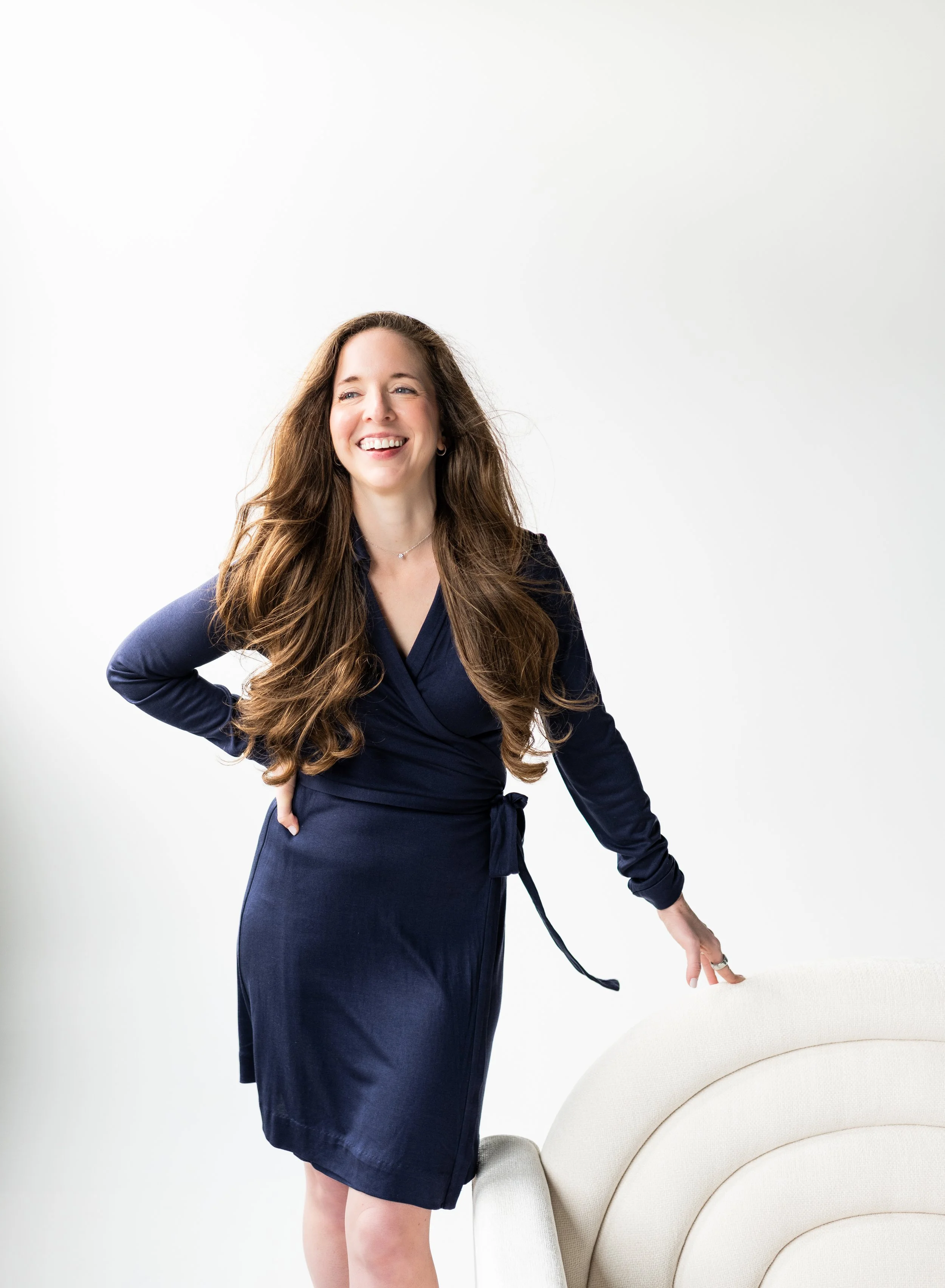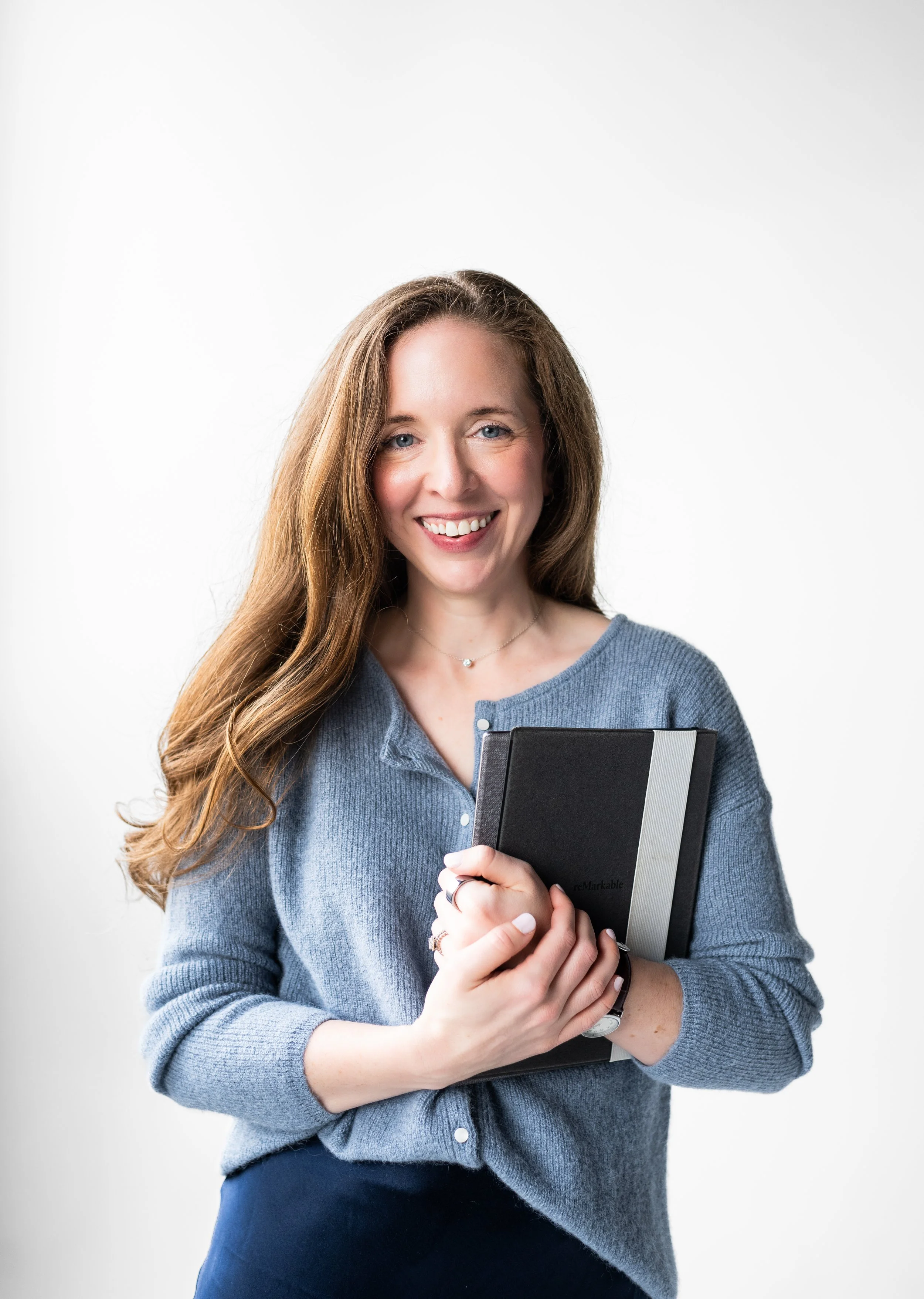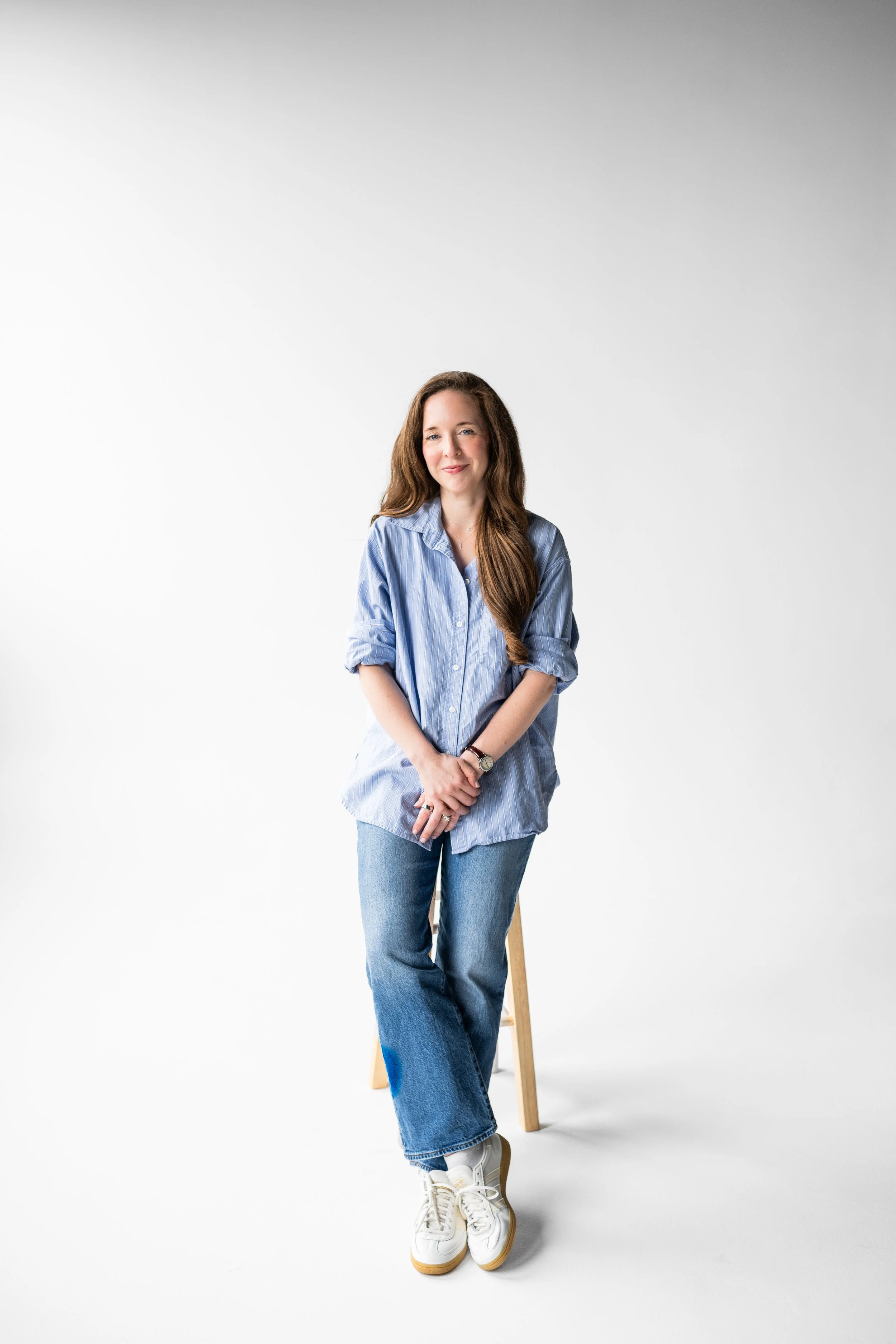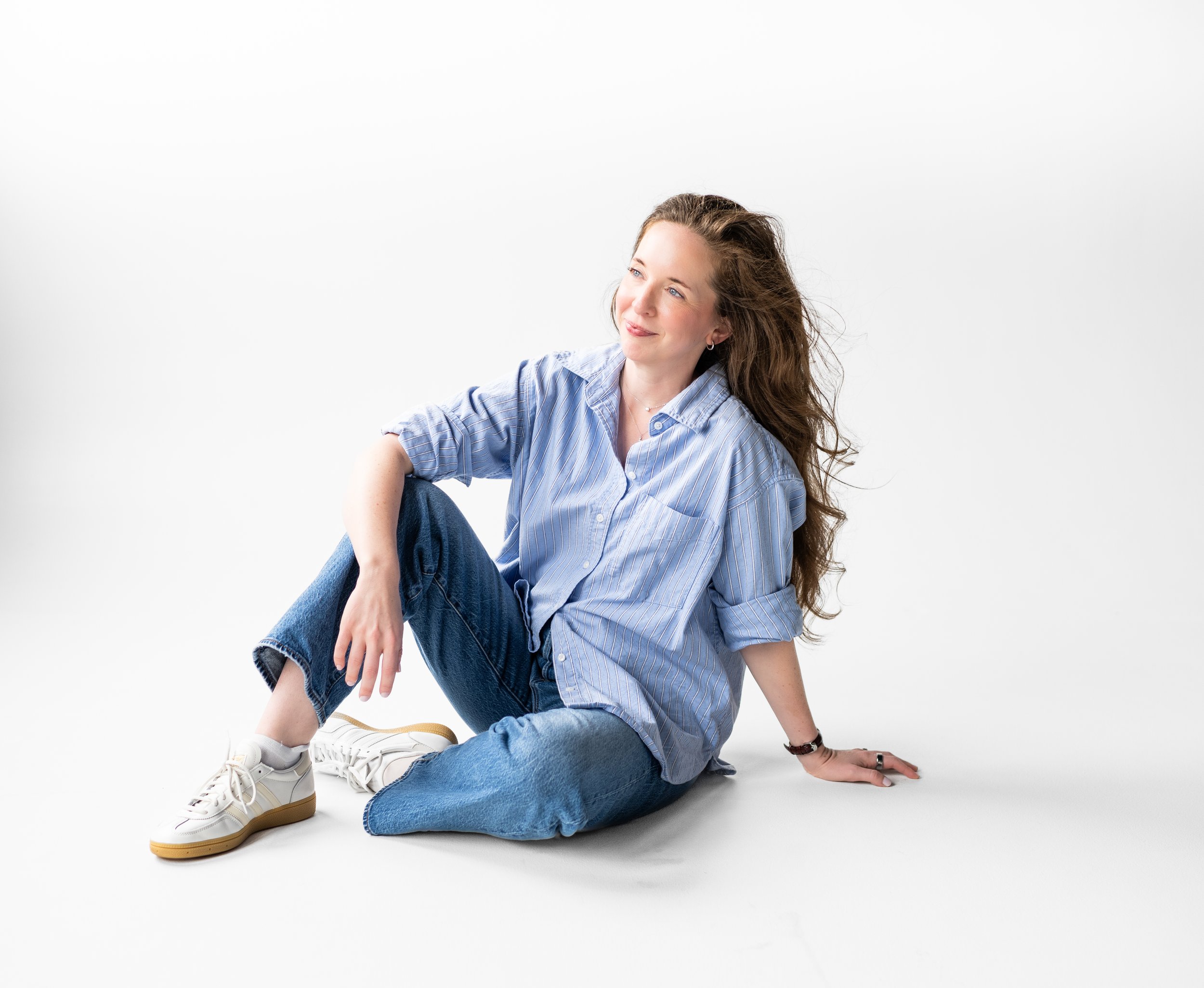 We captured brand photos with 3 outfit changes in a clean, minimal studio with a white background. We incorporated props that tell the story of her brand including laptop, notebook and iPad.